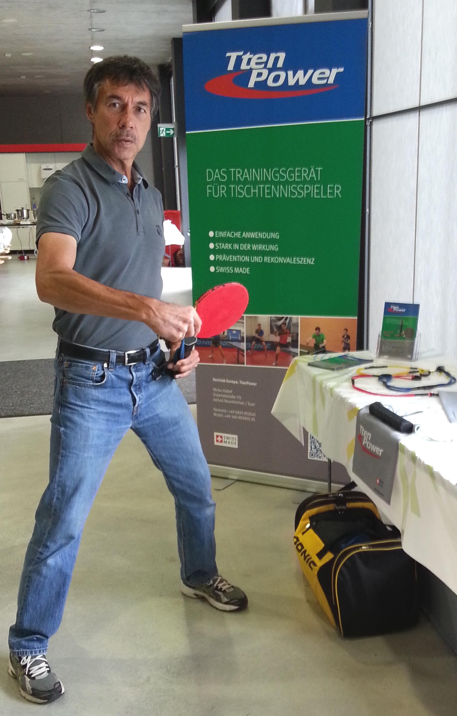Der „Clientis-Cup“ist eins der größten Turniere in der Schweiz. Ralph Müller und Franz Habel vom TtenPower-Team nutzten das Umfeld - von Jugendsportlern bis zu den Profis waren alle Spielklassen vertreten - um das neue Trainingsgerät TtenPower Schweizer Spielern und Interessenten aus dem Publikum zu präsentieren.